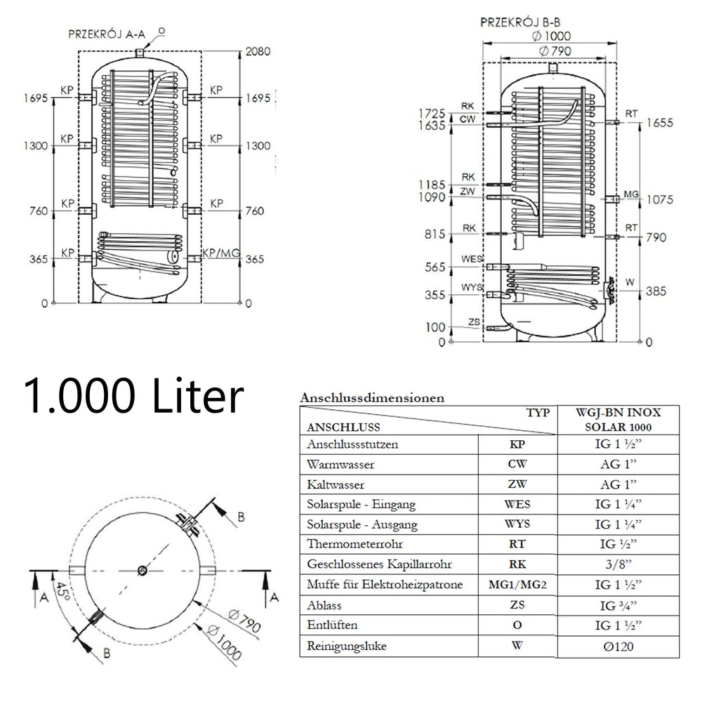 Το WGJ-BN INOX SOLAR είναι ένα συνδυασμένο δοχείο προσωρινής αποθήκευσης για θέρμανση νερού και ζεστού νερού χρήσης με ενσωματωμένο θερμαντικό στοιχείο από ανοξείδωτο χάλυβα ως εναλλάκτη θερμότητας. Σχεδιάστηκε για ενσωμάτωση σε συστήματα κεντρικής θέρμανσης με λέβητες, αντλίες θερμότητας ή για τη χρήση ηλιακής θερμότητας και επιτρέπει τόσο την αποθήκευση θερμικής ενέργειας όσο και τη συνεχή θέρμανση πόσιμου νερού.