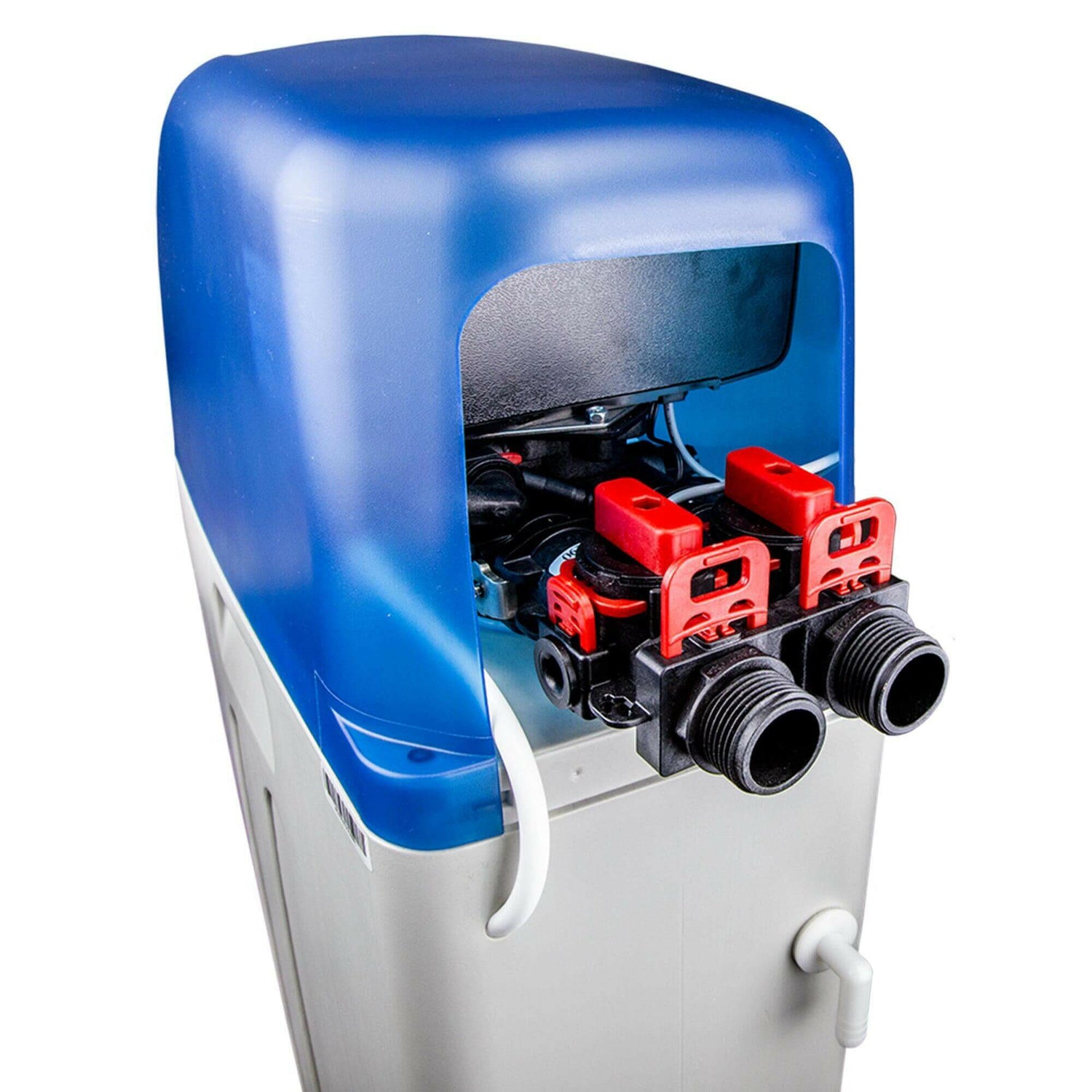 L'adoucisseur d'eau R2D2 impressionne par son boîtier robuste, qui protège non seulement les composants internes, mais sert également de réservoir de sel régénérant. Son couvercle amovible simplifie considérablement l'entretien et le remplissage.