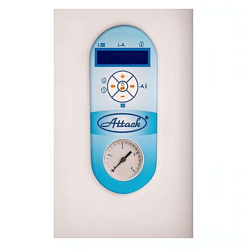 La chaudière électrique murale ATTACK Electric Excellent 24 est conçue pour les systèmes de chauffage à circulation forcée à forte puissance. Son régulateur PID assure une commutation précise entre les différents niveaux de chauffage et maintient une température de départ constante. La commande à distance par GSM/smartphone est disponible en option. L'eau chaude sanitaire peut être produite via un ballon de stockage externe et une vanne 3 voies (homologuée TÜV).
