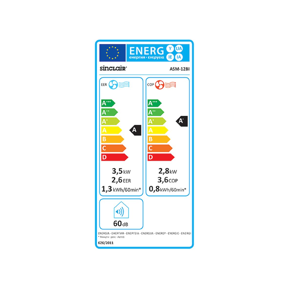 - EER/COP: 2.60/3.60 W