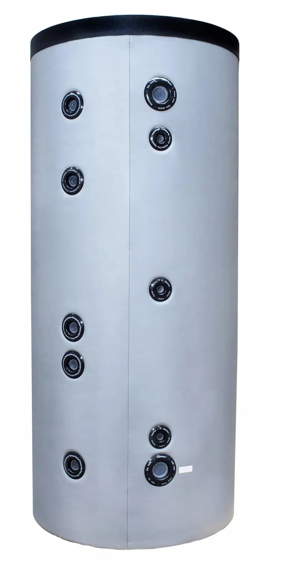 Il serbatoio di accumulo ha due grandi scambiatori di calore, lo scambiatore di calore superiore per la pompa di calore e quello inferiore ad es. B. pannelli solari o caldaia.