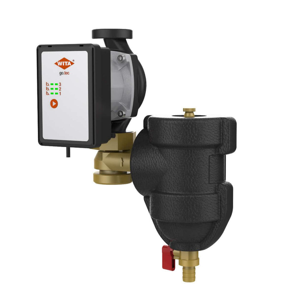 WITA didelio efektyvumo siurblių agregatas apjungia pažangias technologijas su praktiškais sprendimais, kad jūsų sistema veiktų efektyviai ir patikimai. go.tec Didelio efektyvumo siurblys užtikrina galingą ir energiją taupantį siurbimo sprendimą, o „WITA-Trap MS L50“ garantuoja optimalią apsaugą nuo užteršimo ir pažeidimų. Kartu jie sudaro tobulą duetą moderniai, mažai priežiūros reikalaujančiai šildymo, vėsinimo ar saulės energijos sistemai.