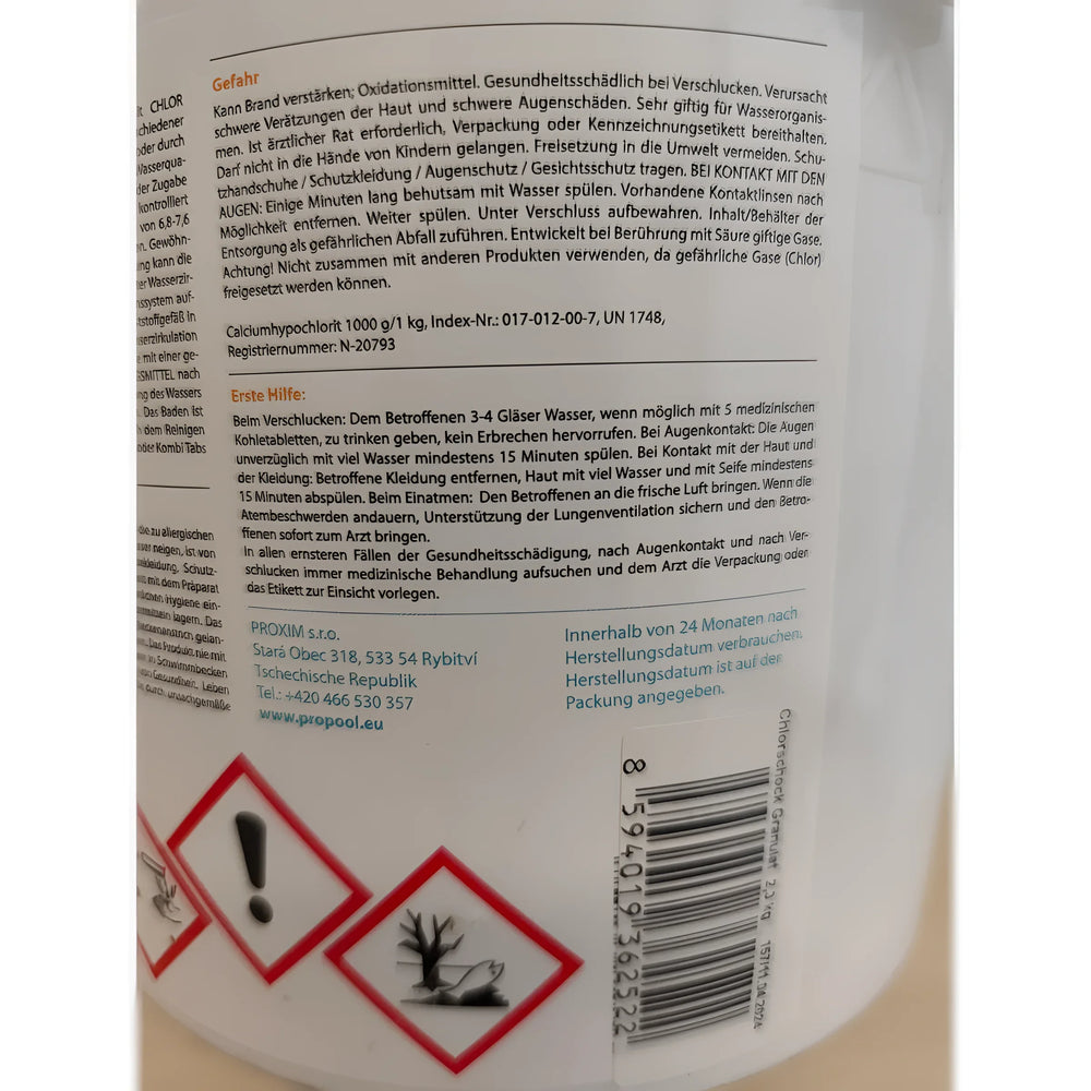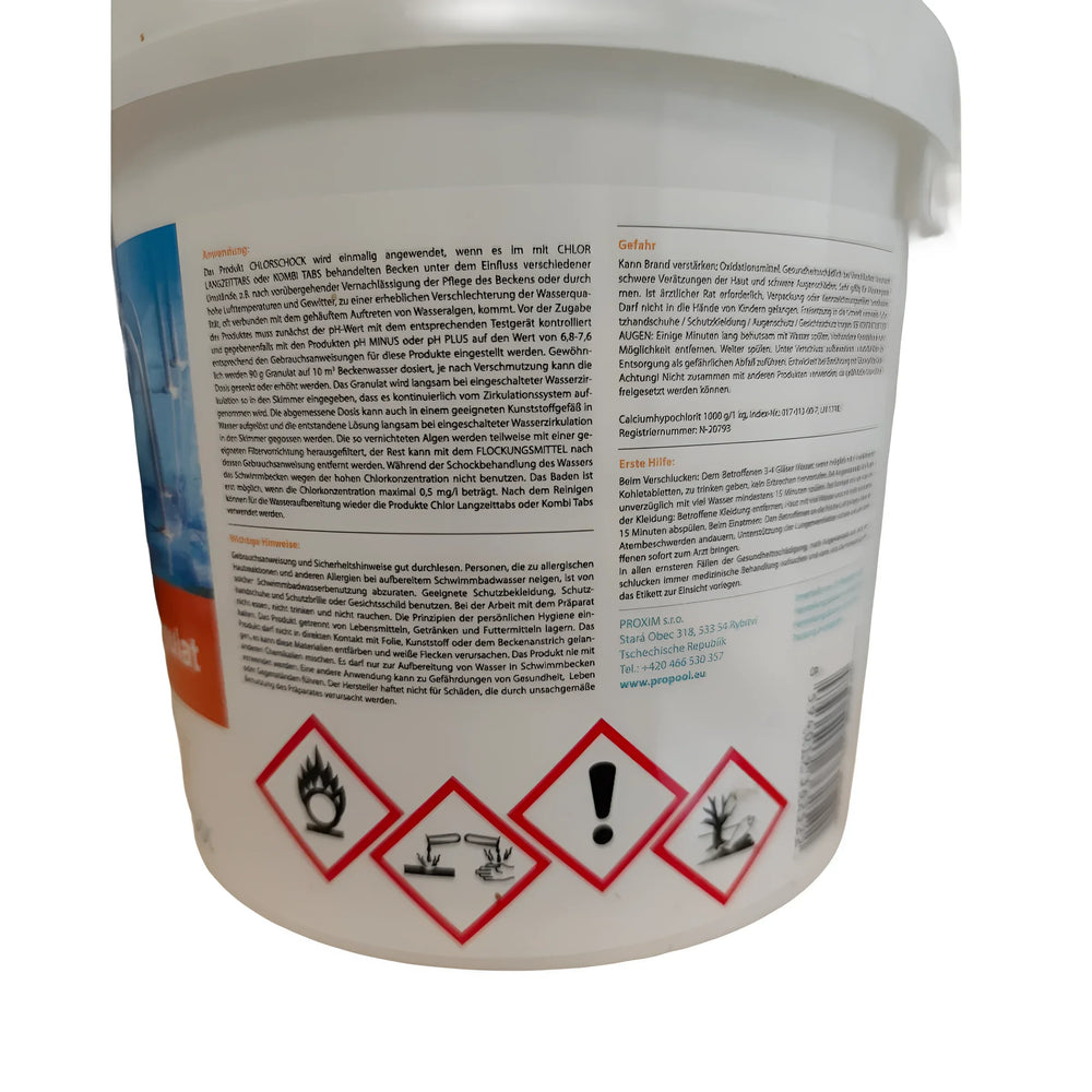 Do zalet granulatu Chlorschock należą jego niezwykle skuteczna dezynfekcja i szybkie rozpuszczanie w wodzie. Jego zdolność do szybkiego zwalczania glonów, bakterii i grzybów sprawia, że ​​jest on szczególnie atrakcyjny do stosowania w basenach.