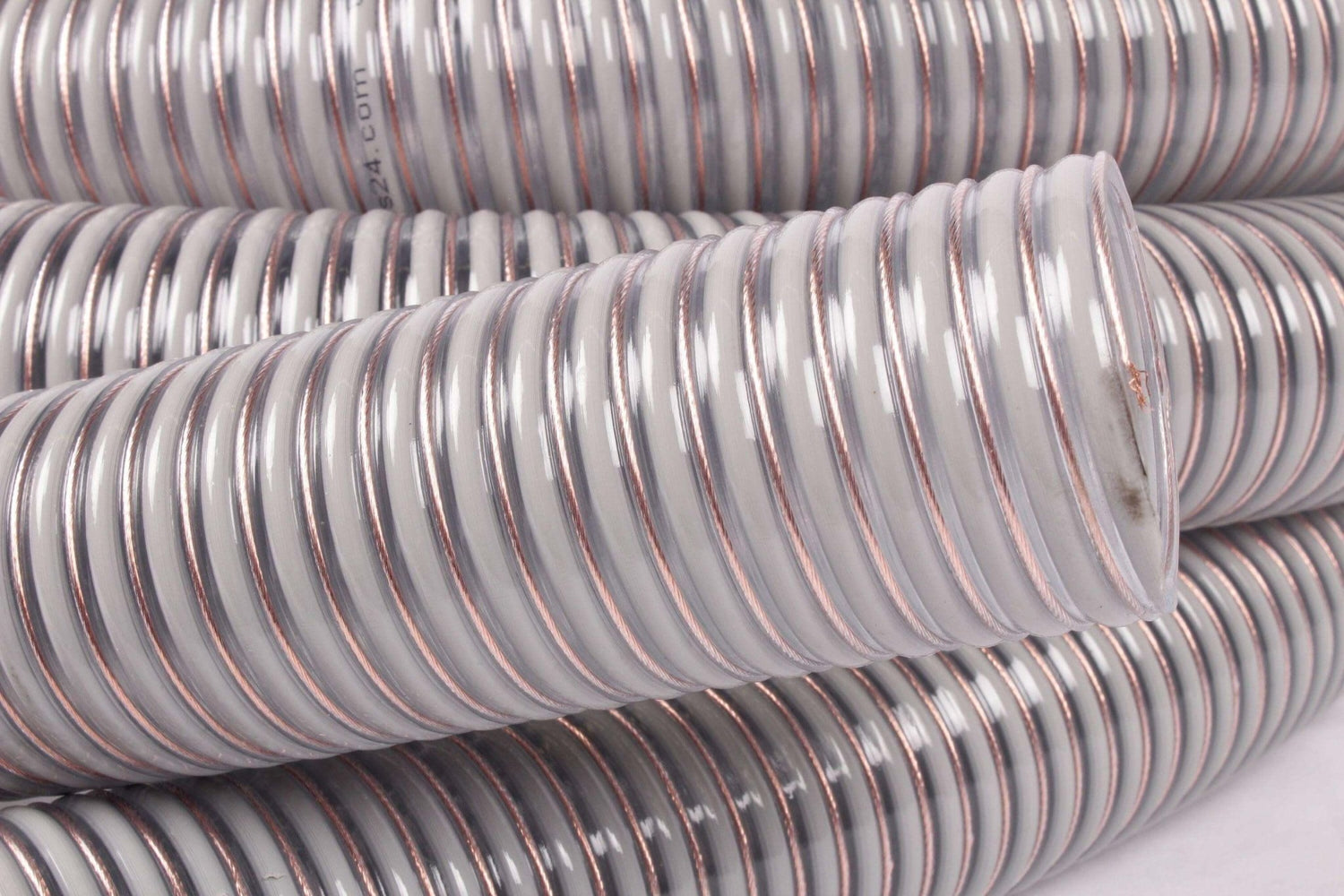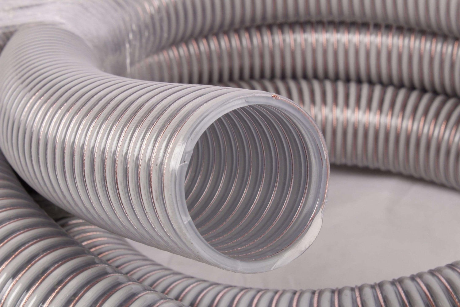 Hadica je antistatická a vyrobená z PVC so zabudovanou pevnou PVC špirálou a integrovanými medenými prameňmi. Venujte zvláštnu pozornosť uzemneniu na oboch stranách.
